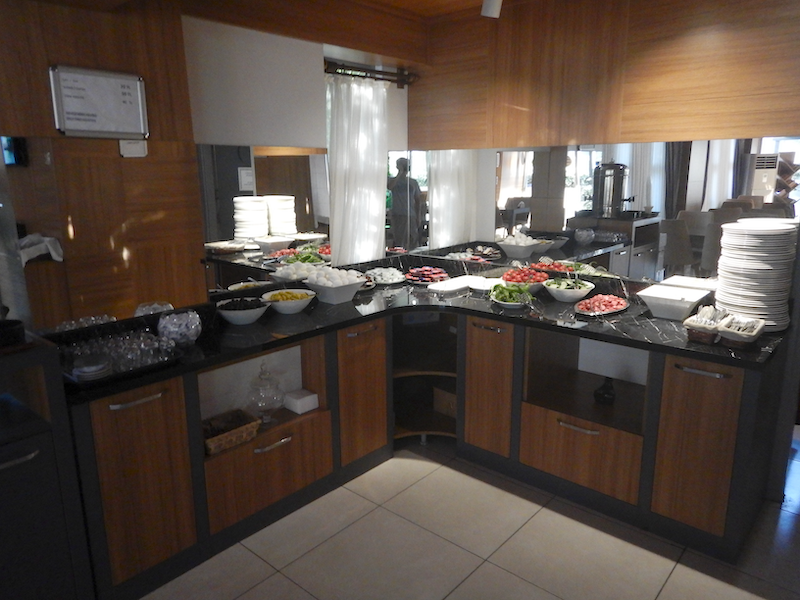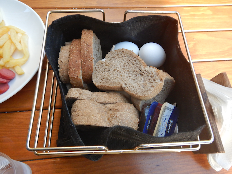 朝食はレセプション前のロビーで食べられます。