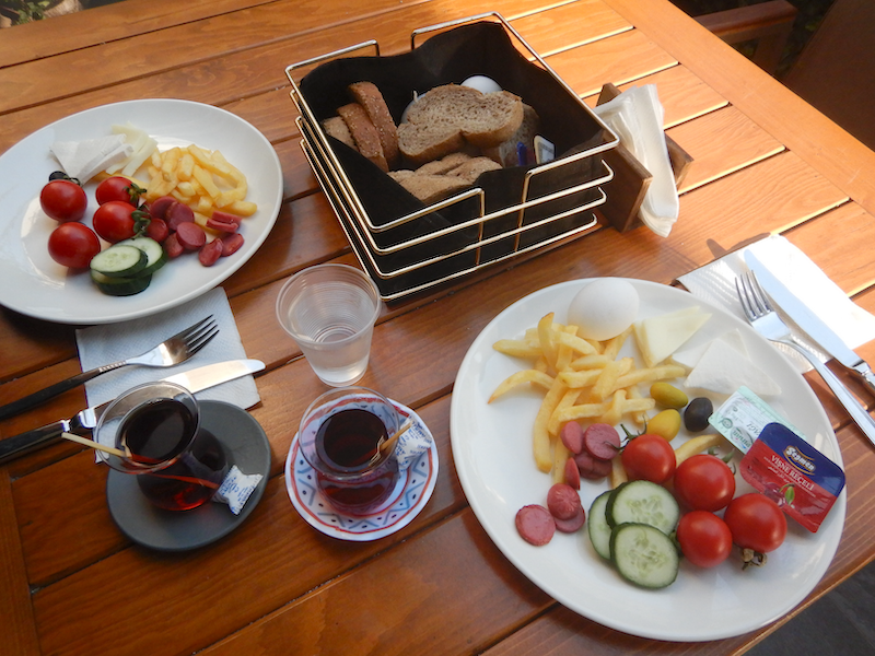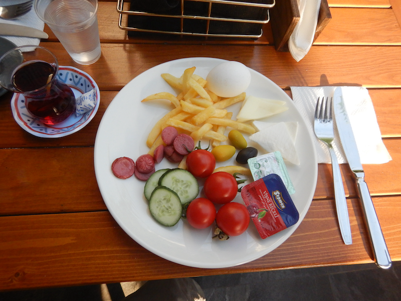 まずはトルコの朝食の定番ポテトフライ。ここはポテトが太めで食べ応えがありそうです。