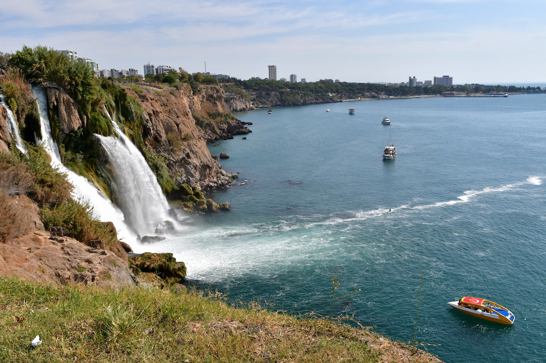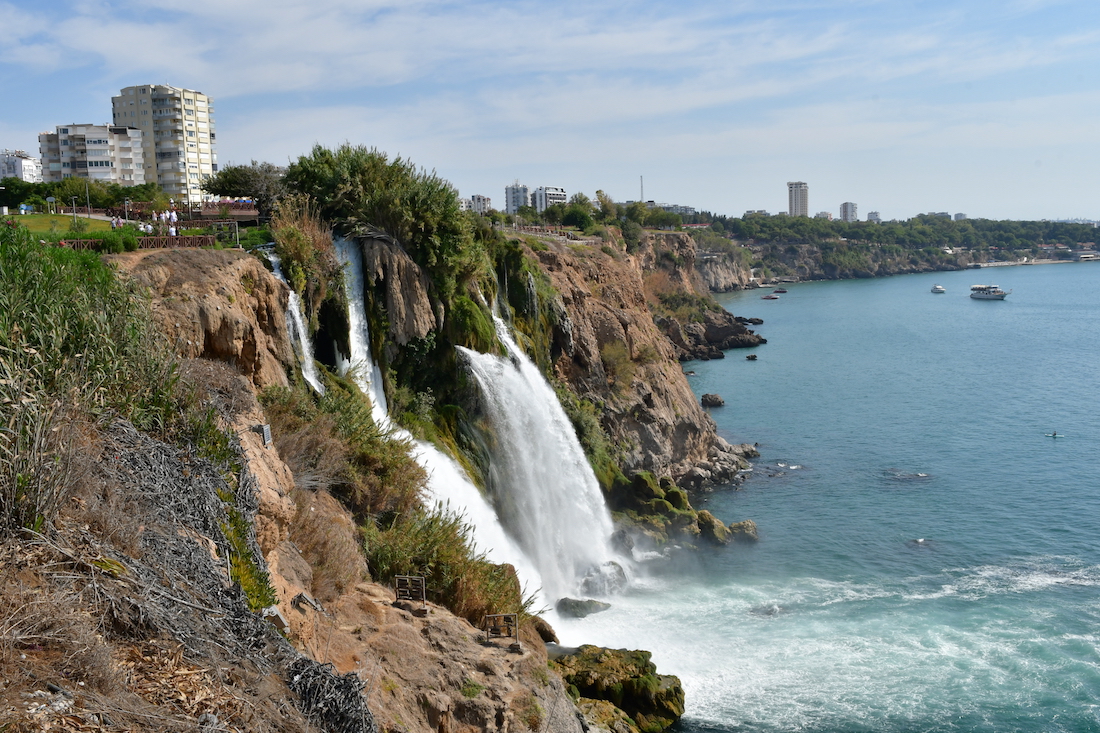 アンタルヤ中心街から少し外れた所に、川が断崖絶壁から海に落ちる滝があるそうなのでやって来ました。