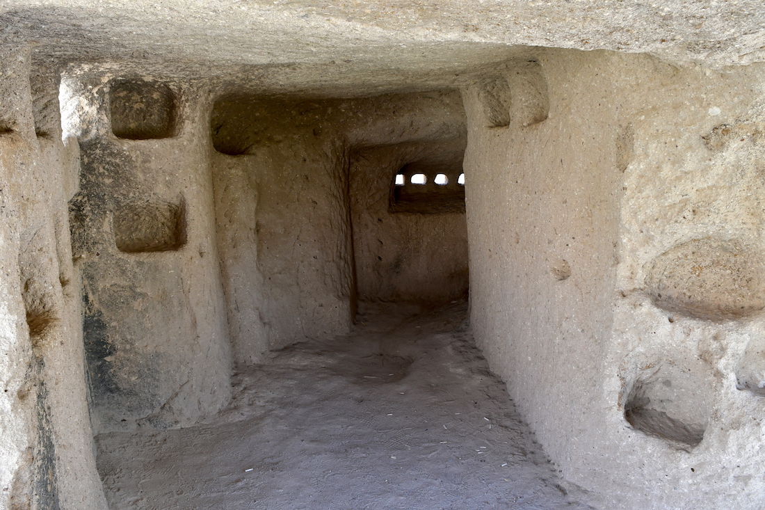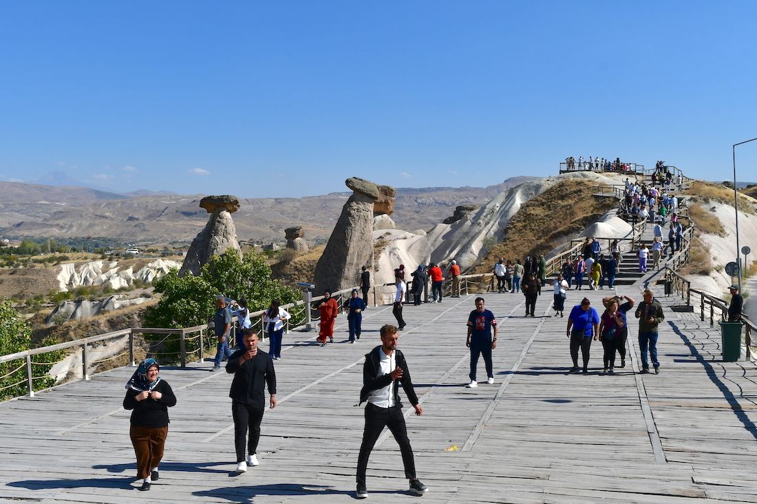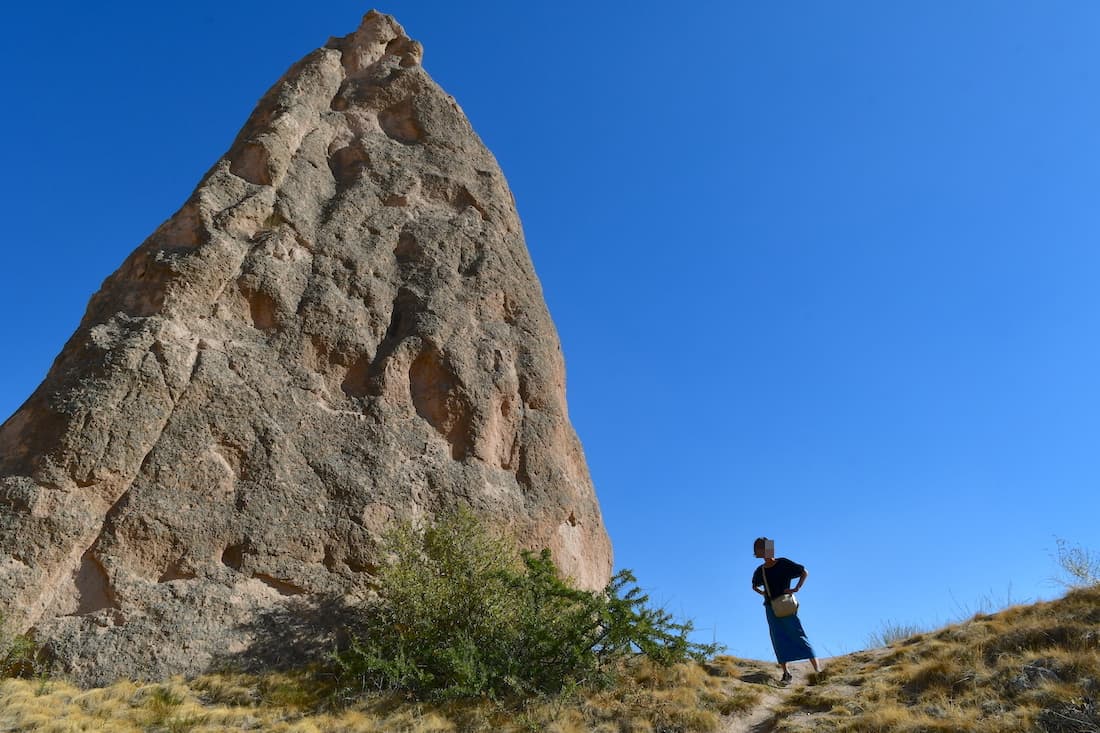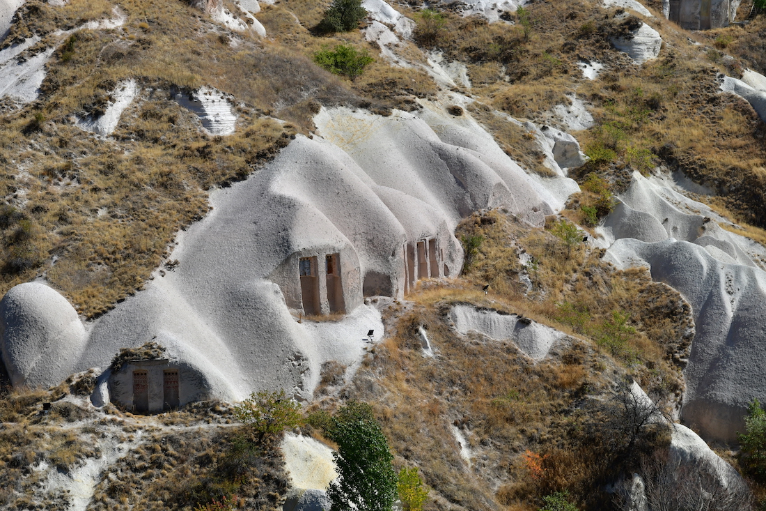 ここはその昔、ここに隠れ住んでいたキリスト教徒が、ブドウの肥料にするために鳩の糞を集めた場所だそうです。確かに素晴らしい眺め。ひときわ高いのはウチヒサル城。