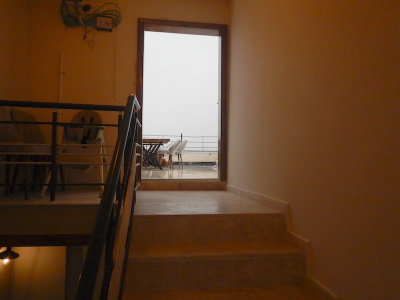 朝食は8時半〜10時です。通常は屋上テラスで提供されるのですが、起きたらまさかの雨、、、。一応屋上に来てみました。