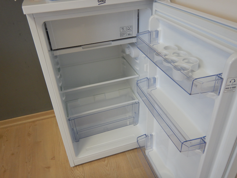 部屋の隅に冷蔵庫が置いてあります。