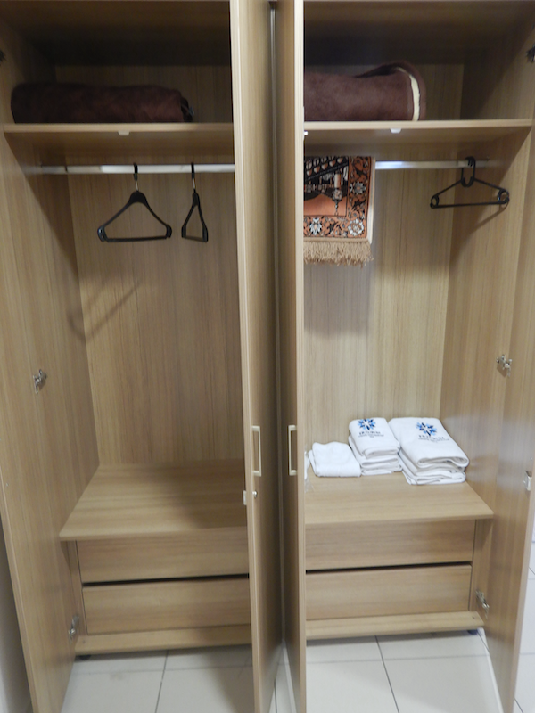 中にタオルや毛布、礼拝用のカーペットが入ってます。