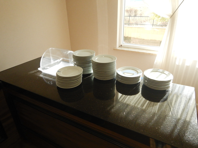 一番端に置いてあるカラの容器は、多分お菓子系が入ってたんじゃないかと推測します。皿だけはたくさん残ってます。