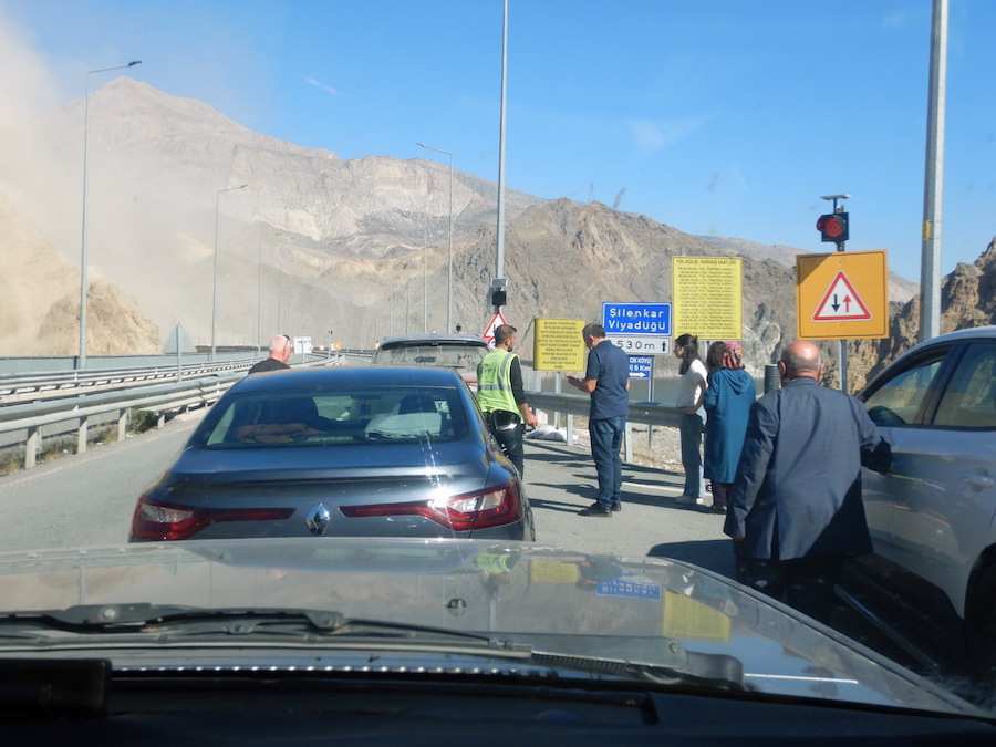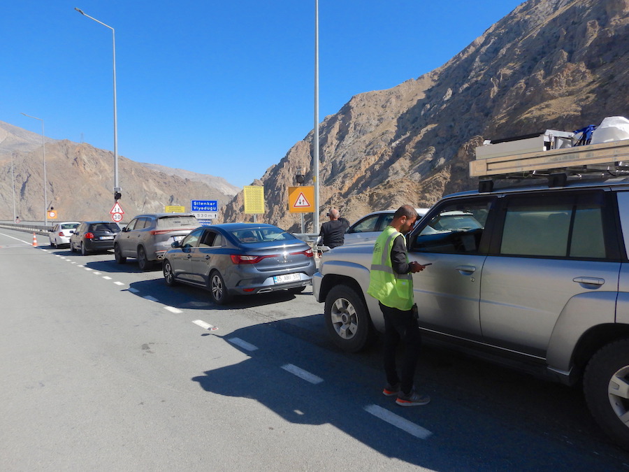 黄色ベストの男性がやって来て、窓越しに「英語しゃべれるか?」って聞くから「Yes」って答えたのに、トルコ語9割、英語1割のチャンポンで話すので、こちらはチンプンカンプン。