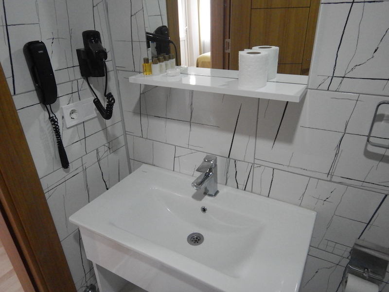 ドライヤー完備の洗面台。石鹸やシャンプーはここに置いてあります。