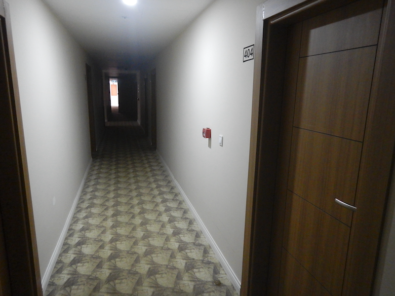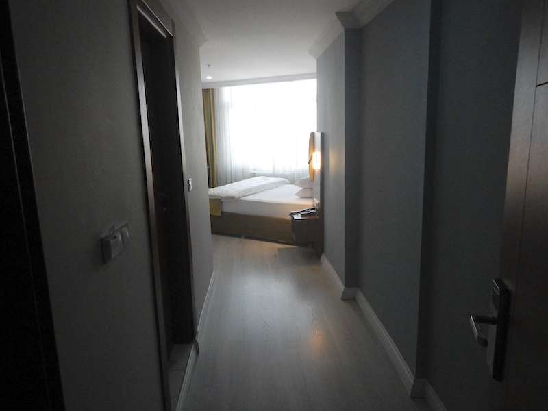 レセプションに声をかけると、中の女性は居眠りしてました。慌てた様子でチェックイン手続きをしてくれるけど、笑顔はありません。部屋のカードキーをトランプのように操り、その中の一枚を選んで案内係の男性に渡します。おそらく荷物係なのでしょうが、ぴーぱーは荷物はありません。