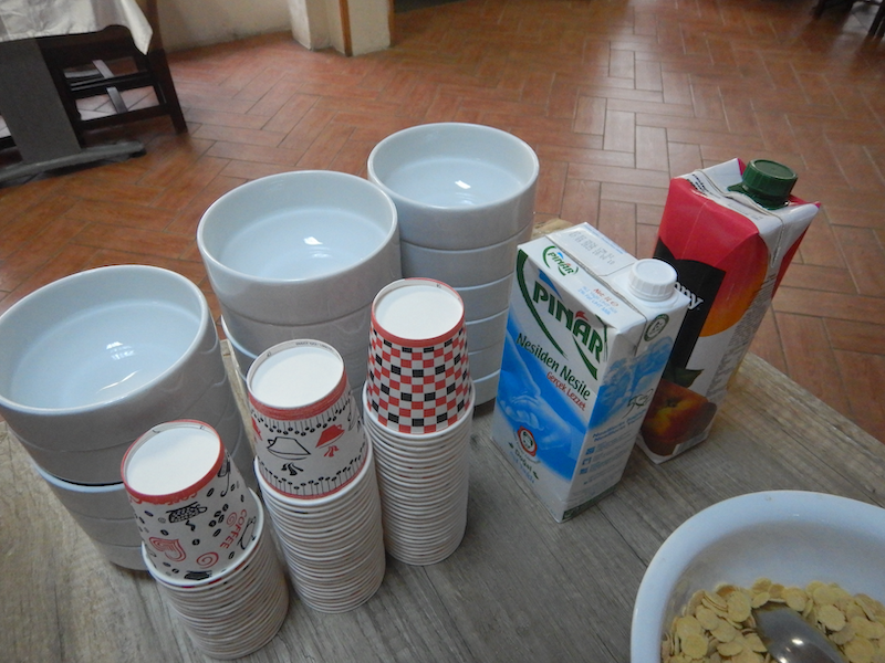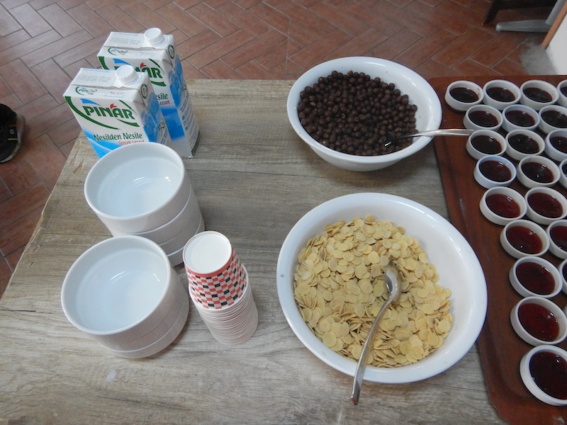 シリアルと牛乳もあります。残念ながらジュースはないです。