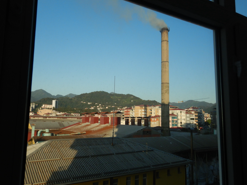 隣のお茶工場の方がよく見えます。煙突ビューです。