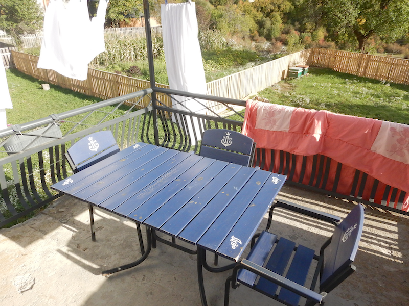 シーツやタオルを干してる建物があります。ゲストハウスに違いありません。思い切ってドアをノックしたら、中から若い女性が出てきました。ここで間違いなかったです。