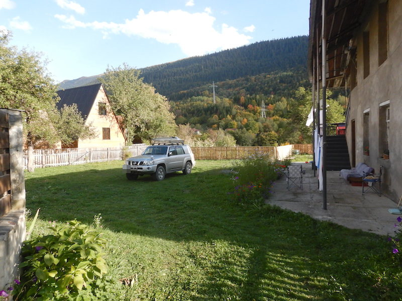 車は建物前の庭に入れるようにと言われました。これはありがたい駐車場です。