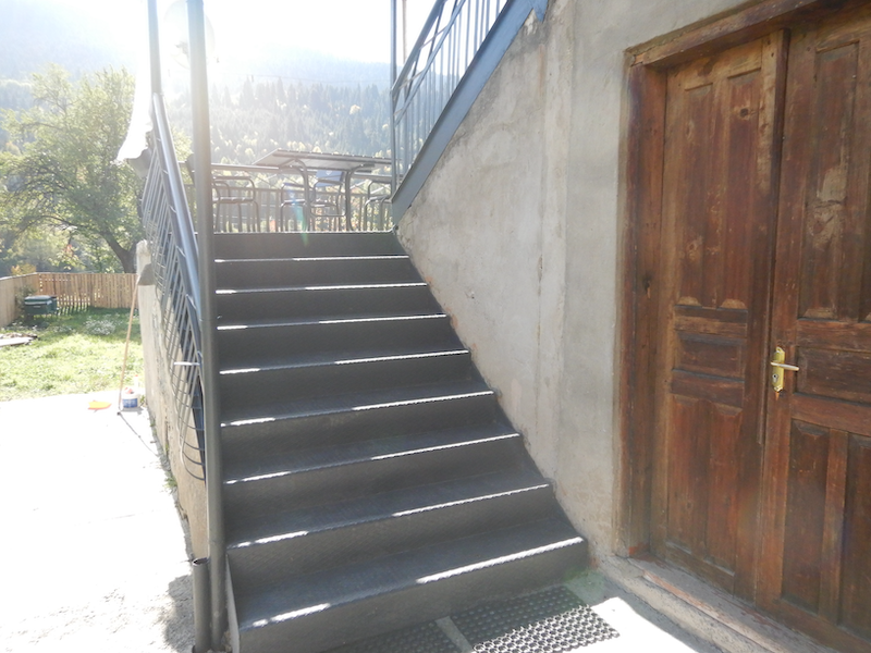 階段の踊り場にイスとテーブル。朝食を頼むとここで食べるのかもしれません。