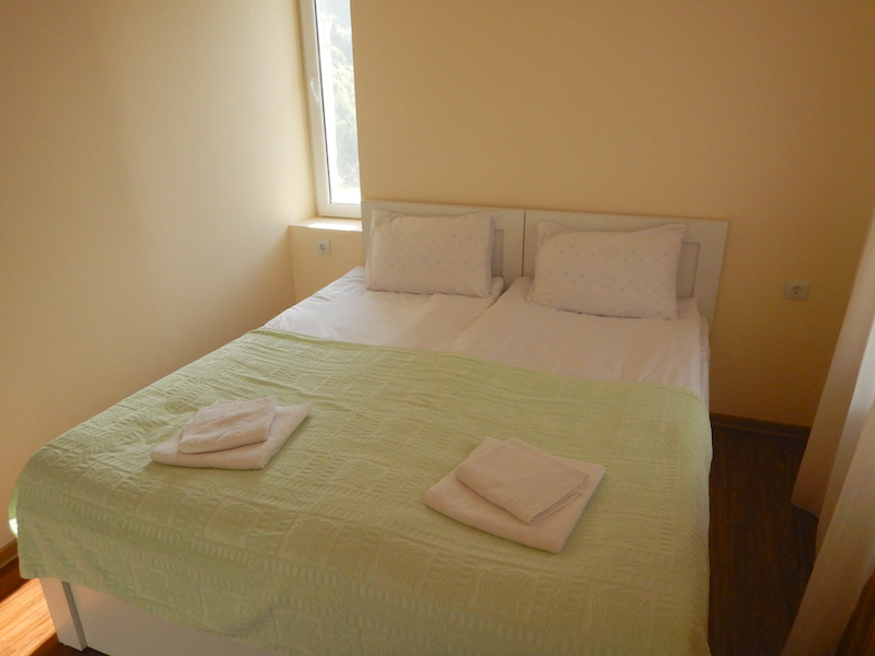 隣の部屋のドアが開いてたので覗いたら、隣はダブルルームでした。ダブルはかなり狭く、部屋はベッドでいっぱいです。トリプルで良かったかも🎵
