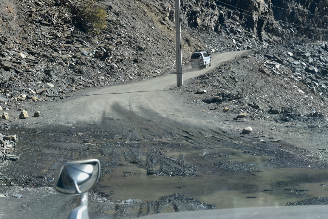 と思ったら、ウシュグリ村直前の数キロ区間だけ若干道が荒れてきました。