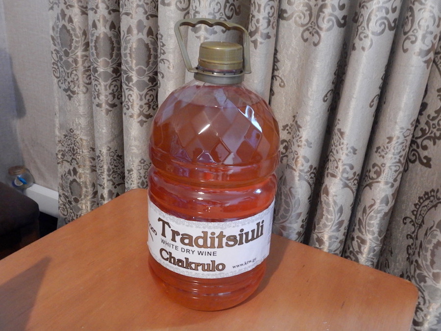 夕食に、この前買ったジョージアの激安ワインを飲んでみました。