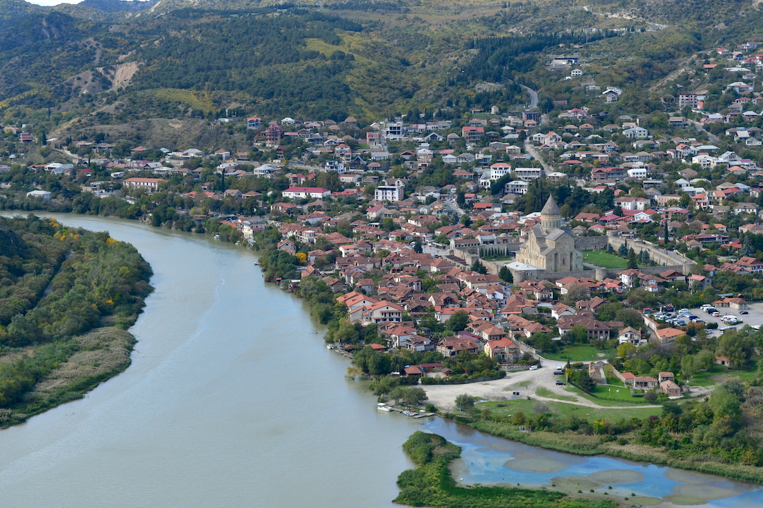 ムツヘタの街が見下ろせます。スヴェティツホヴェリ大聖堂が見えます。