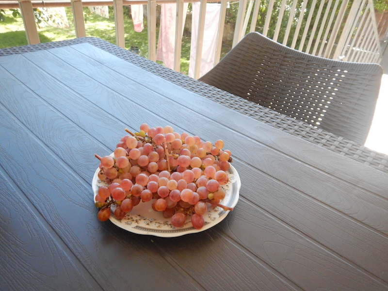 支払いを済ませると、オーナーが庭でとれたブドウをくれました。