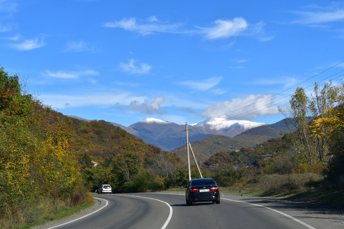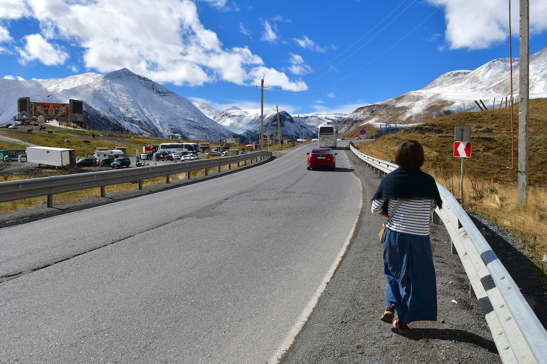首都トビリシから北へ。ロシア国境手前の街ステパンツミンダまでの約180kmが軍用道路です。