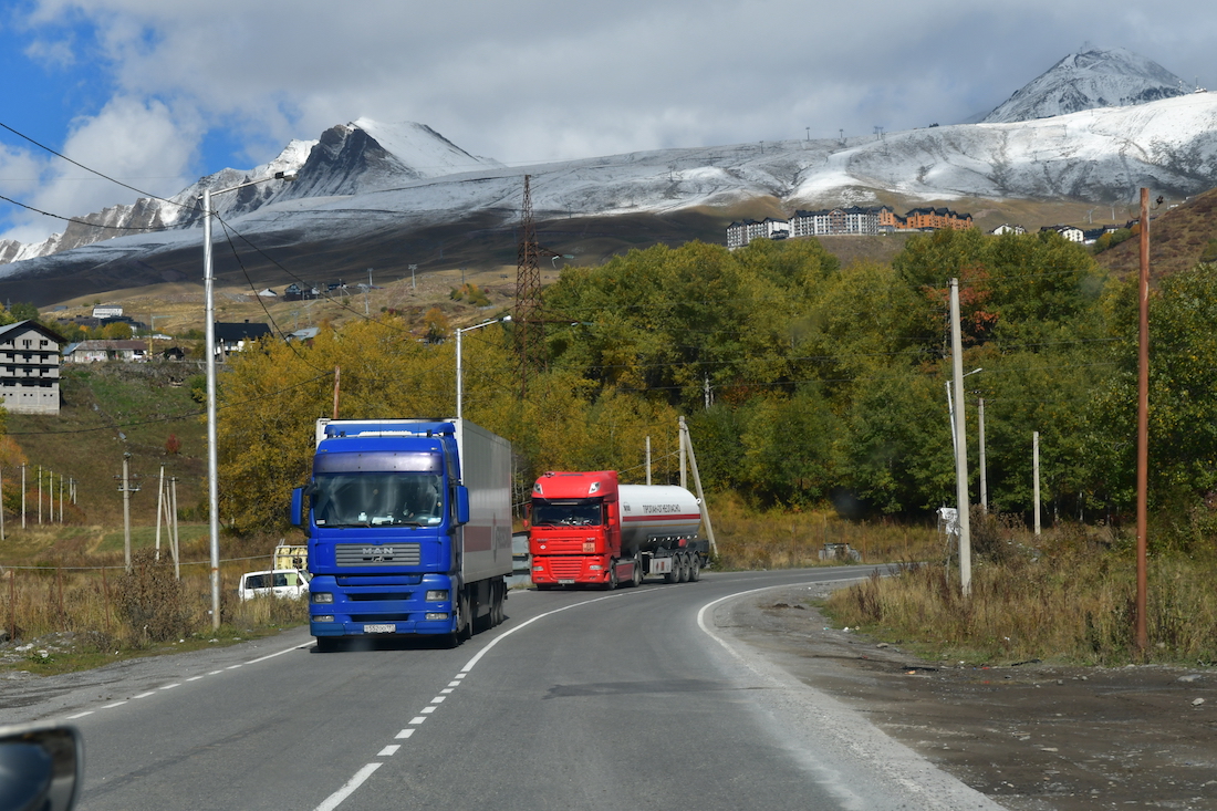 先に進みます。でもこの道、ロシアとジョージアを結ぶ幹線道路だけあって交通量が多いのと、道路工事がそこら中で行われています。そのせいでいつまで走っても景観が工事ビュー。