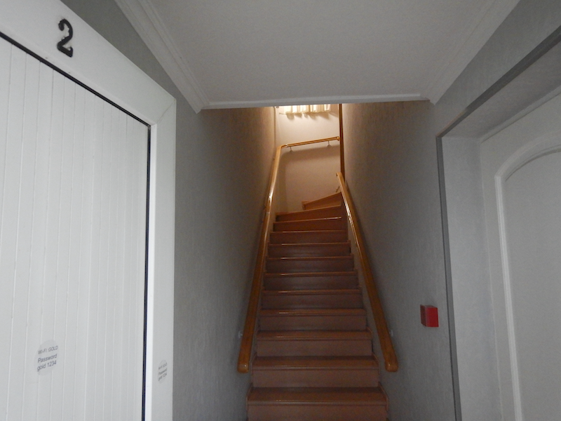 言われるまま先に進んでみたら、右側に小さい看板が出てる建物がありました。どうやらホテルはこっちみたいです。
