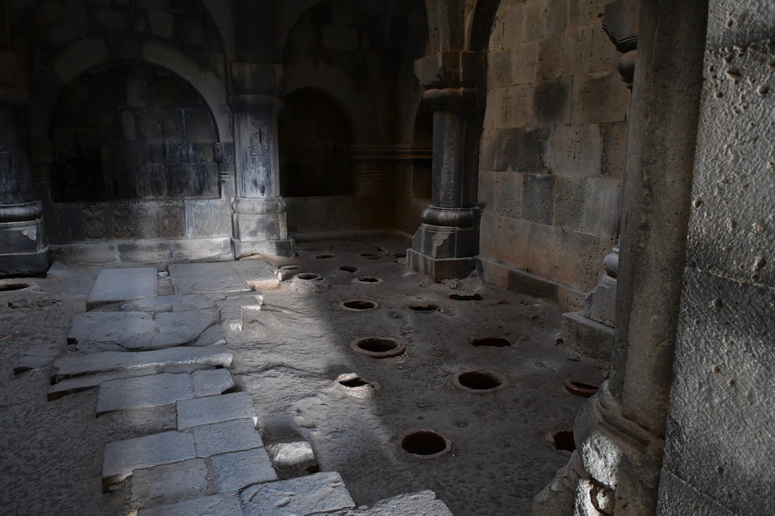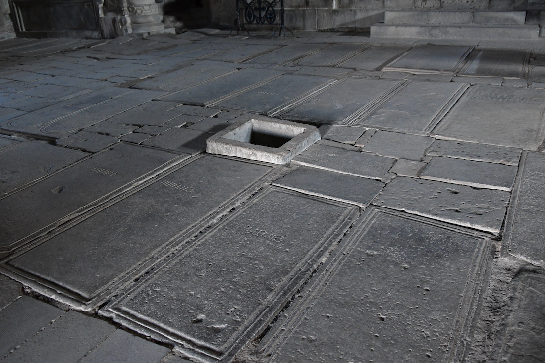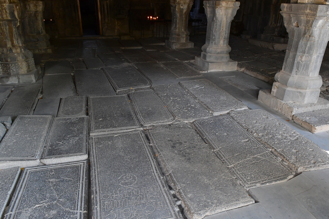 床は全て墓石。もしかして古くて誰の物だか解らなくなった墓石をリサイクルして使用したのでしょうか?