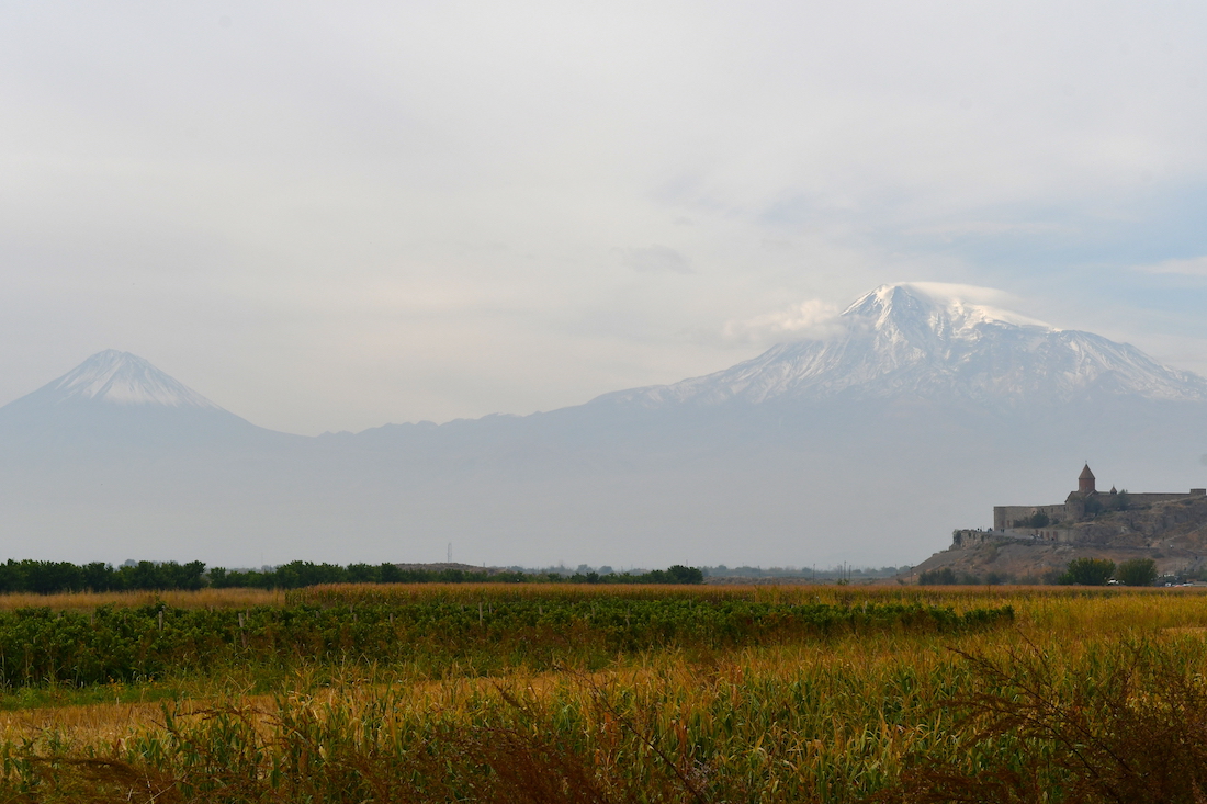 左の小アララト山も美しいコニーデ火山の山容。小とは言え、かなりの標高とお見受けしました。