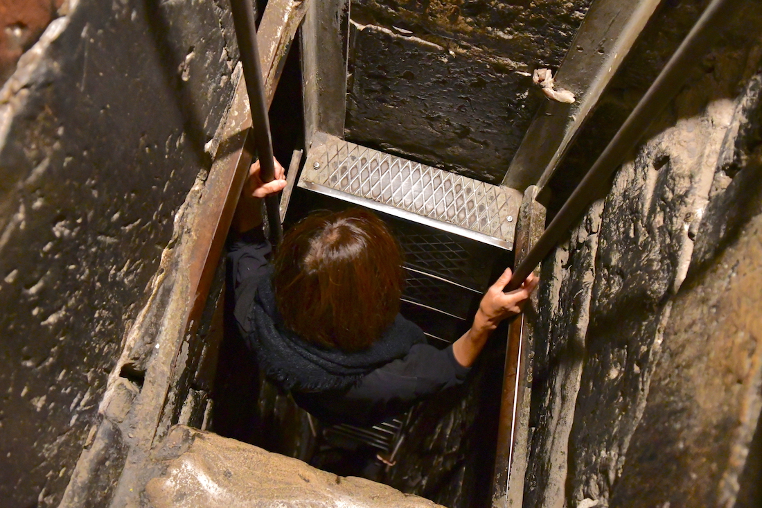 ハシゴの途中から地下牢が見えてきました。
