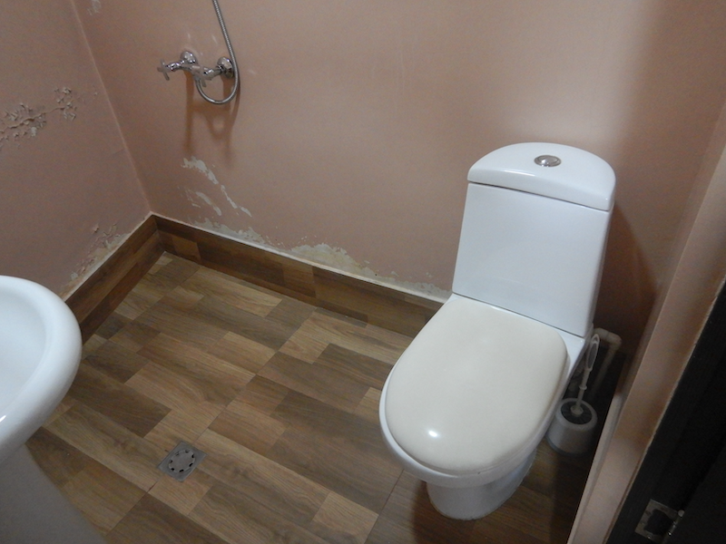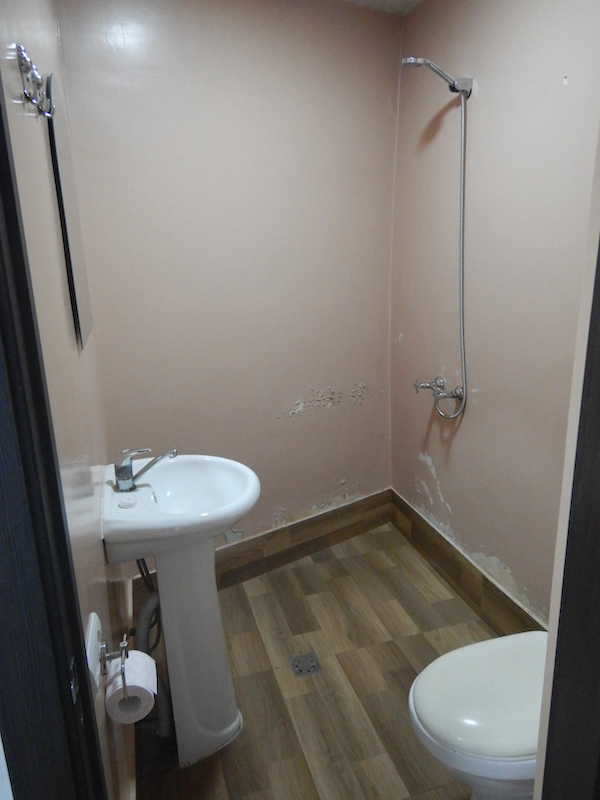シャワーカーテンがないのでトイレまでびちゃびちゃになるタイプ。