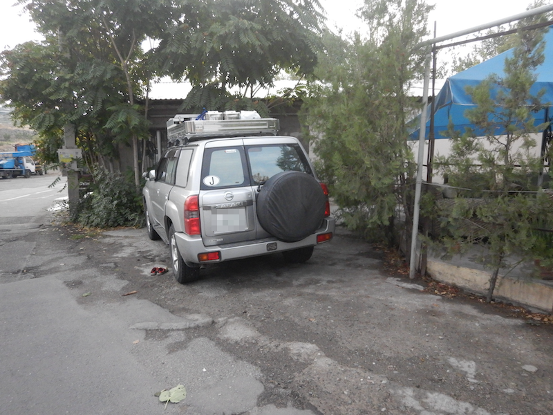 車は道路沿いの空きスペースに駐めるように言われました。ちょうどカーブの曲がり角なのでちょっと心配だけど、仕方ありません。