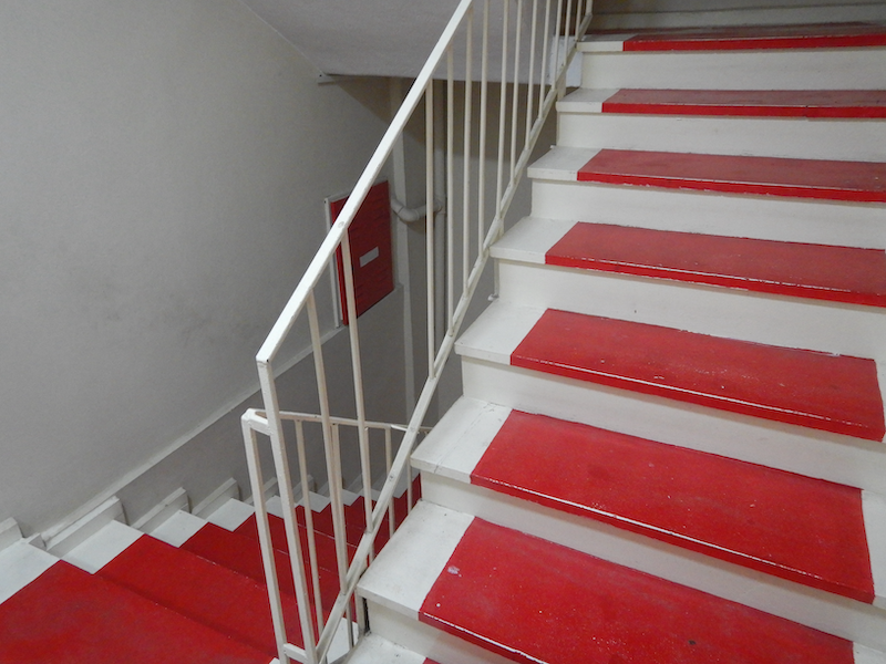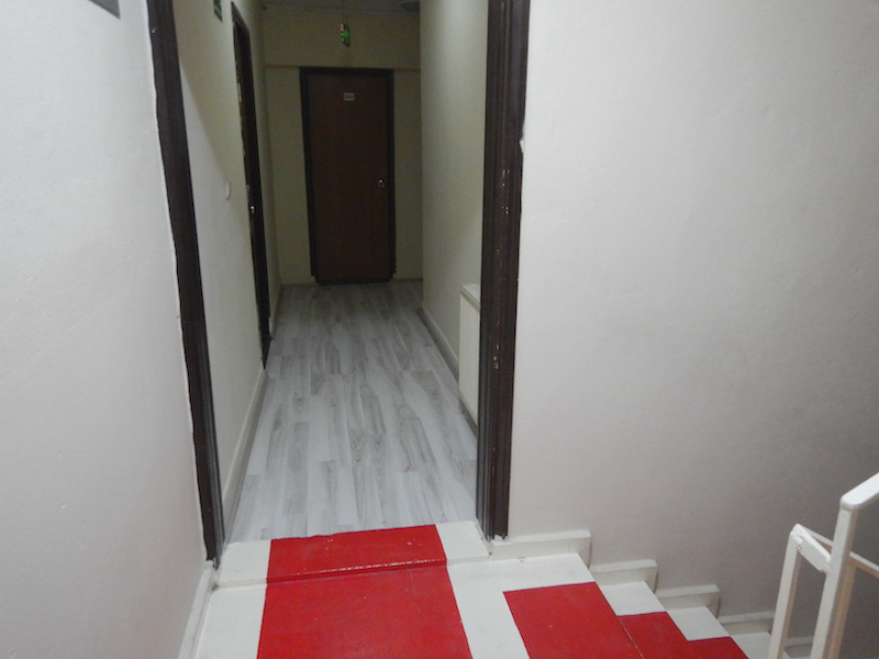 2Fの部屋はまだ掃除中。てっきり2Fなのかと思ったら、掃除中の女性に声を掛けて鍵を受け取り、さらに階段を上ります。
