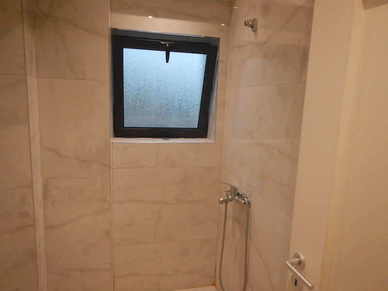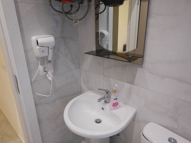 シャワーブースにカーテンはありません。でも翌朝も熱いお湯が出たので、その辺りはギリシャの民泊より良いです。