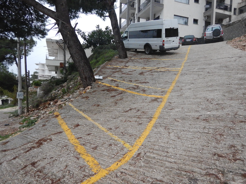 果たしてここに駐めていいのかどうかわからないけれど、坂の途中よりは安心できます。
