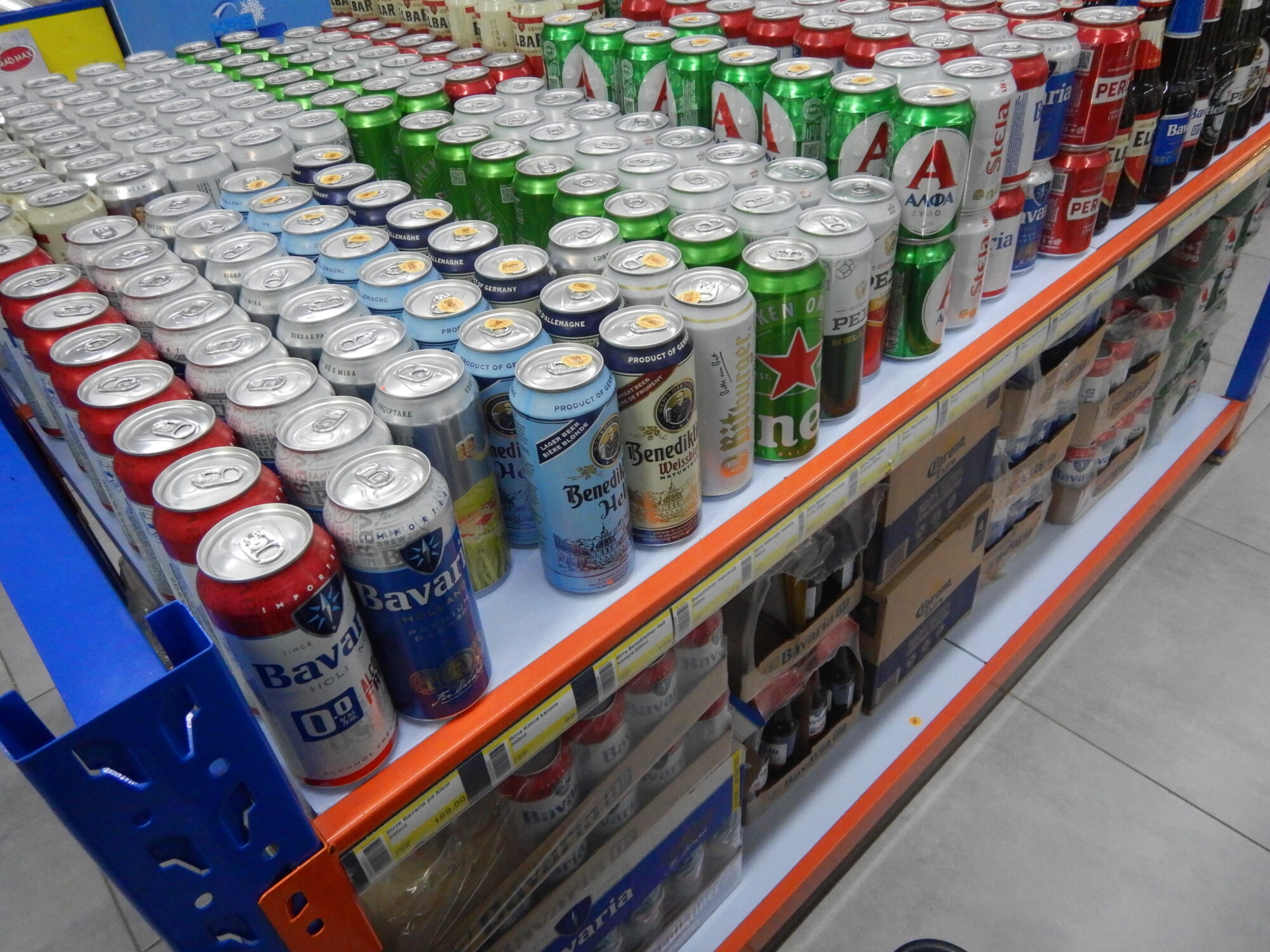 ビールは500ml一本180円で日本並み。1.5Lペットなら430円で少し安い。