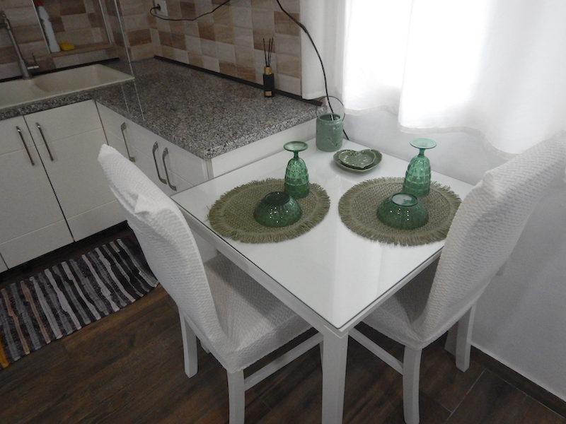 窓の横に食事スペース。