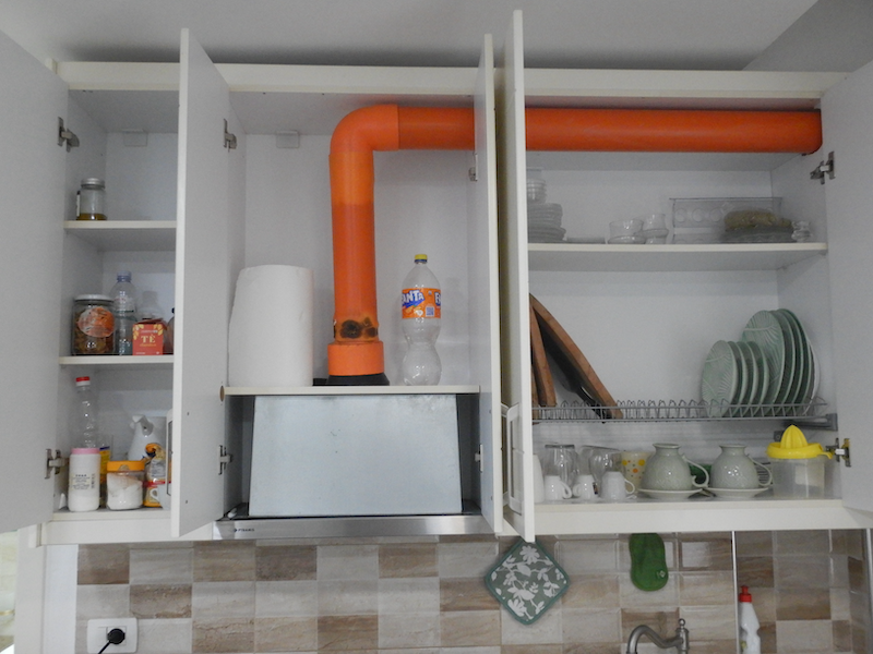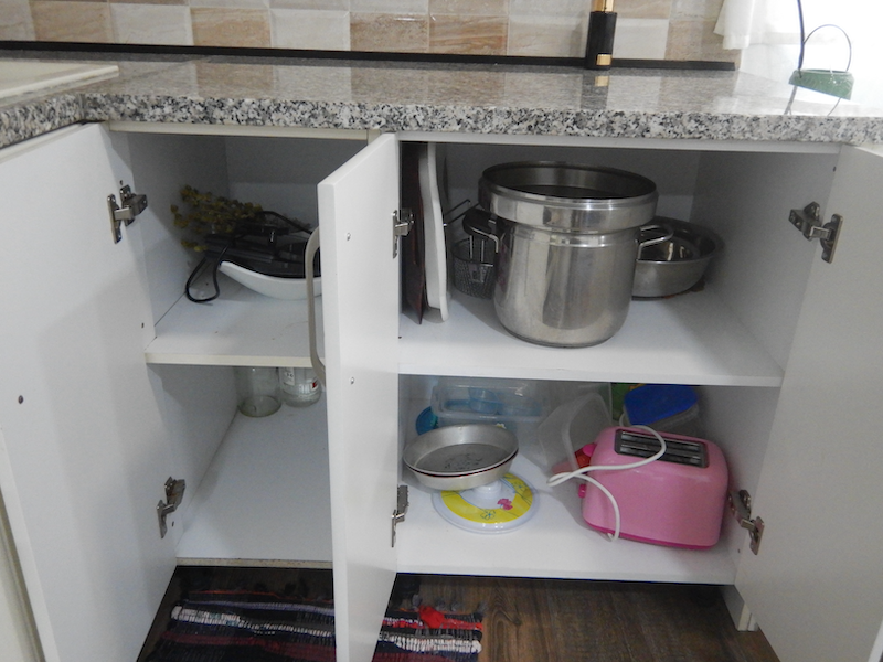 鍋やトースターもあるけれど、やや雑然とした感じです。