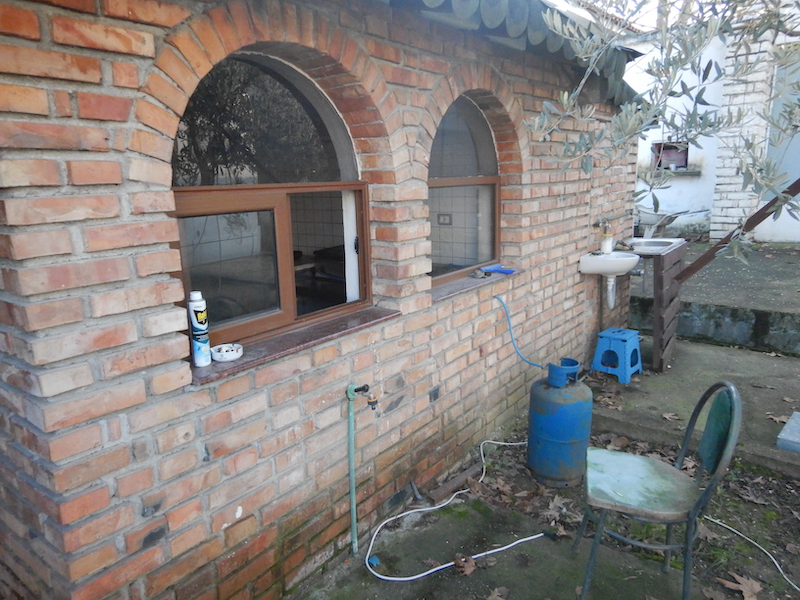 通路横の建物内はキッチンです。
