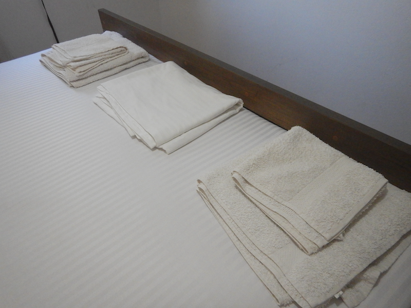 タオルは一人2枚ずつ。掛け布団はなく、布きれが置いてあるだけです。