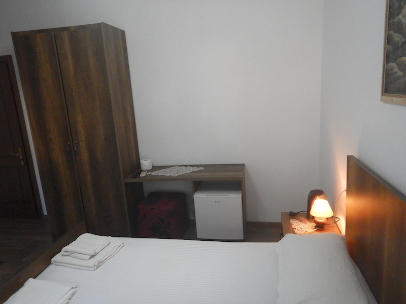 部屋に案内してもらったら支払いです。部屋まで来る間もずーっと喋りっぱなしだったオーナーが「料金は予約確認書に書いてあるわよね」というので「はい」とスマホを見せたら、絶句・・・・。しばらく黙った後に「ずいぶん安いのね」と絞り出すように言います。ぱーも不思議なのですがVPN接続してBooking.comに繋ぐと、この宿はグッと料金が下がるんです。そもそもGenius割引で普通より安くなってるのに、さらに安くなって13.65ユーロになりました。