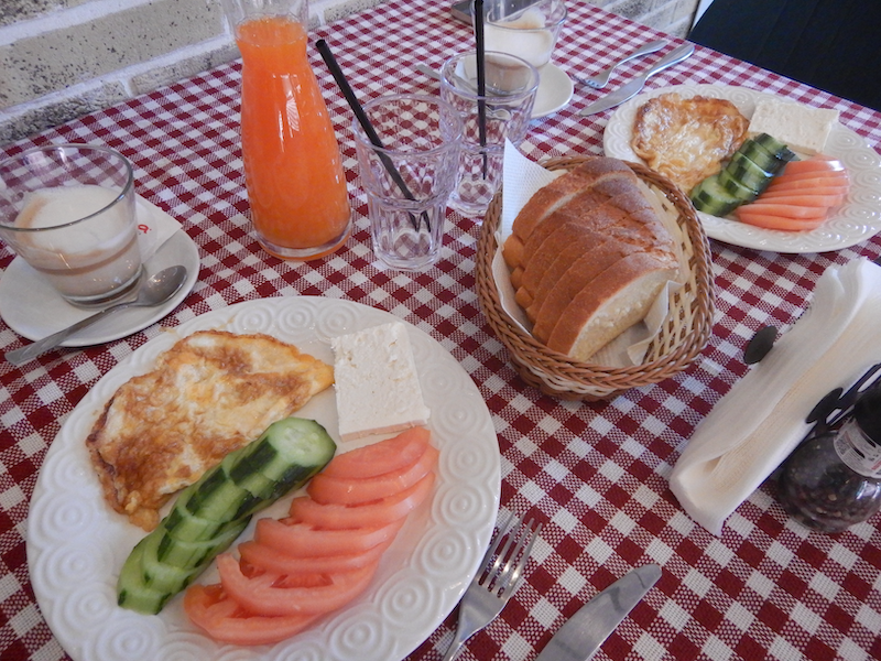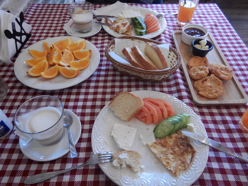 しばらくすると朝食が運ばれてきました。内容はKarafli Guest Houseとほぼ一緒です。今日はチーズがプラスされてるくらいかな。パンにつけるバターとかジャムはありません。