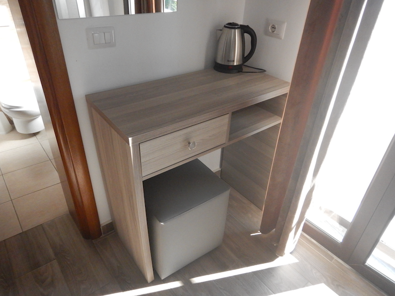 改めてエコノミーじゃない通常タイプの部屋の写真を見ると、湯沸かしポットと一緒にカップやグラス、コーヒー、紅茶が映ってるので、その辺がエコノミーとの金額差かもしれません。