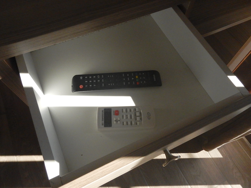 引き出しの中にテレビとエアコンのリモコンが入ってます。