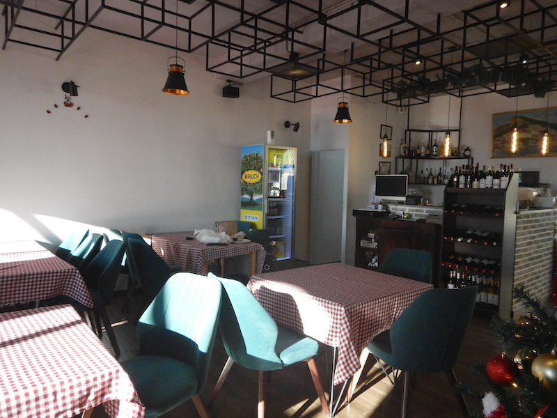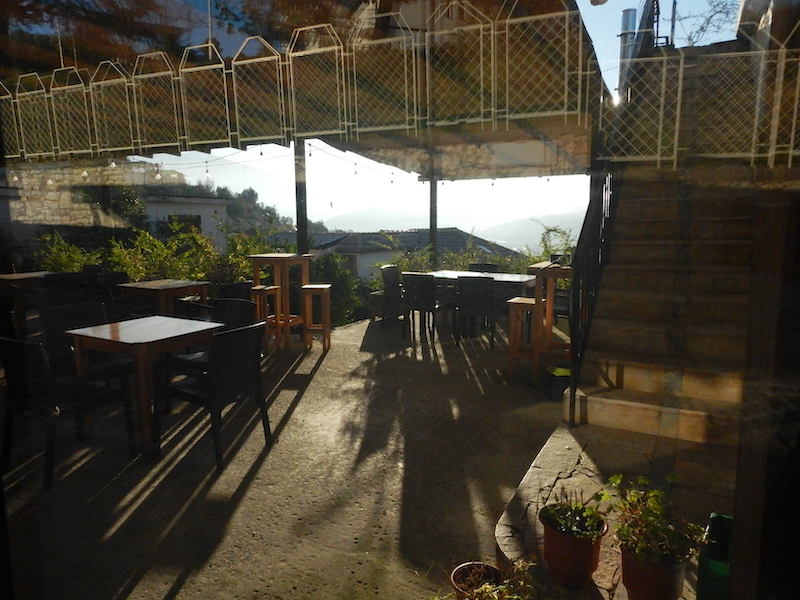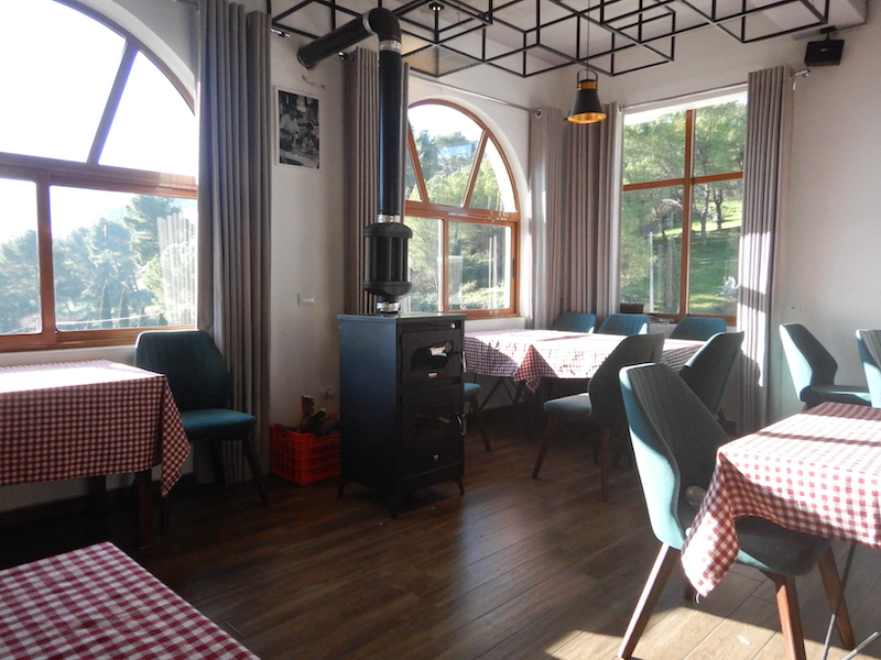 仕方なくもう一度レストランに行ってみると今度はドアが開いて、昨日部屋に案内してくれた女性がいます。店内はヒンヤリとしていて、食事も全く準備されてません。今日もストーブはつけてもらえないみたい、、、。先日泊まったKarafli Guest Houseも同じだったので、やっぱりアルバニアではストーブは ”見るだけ” のようです。