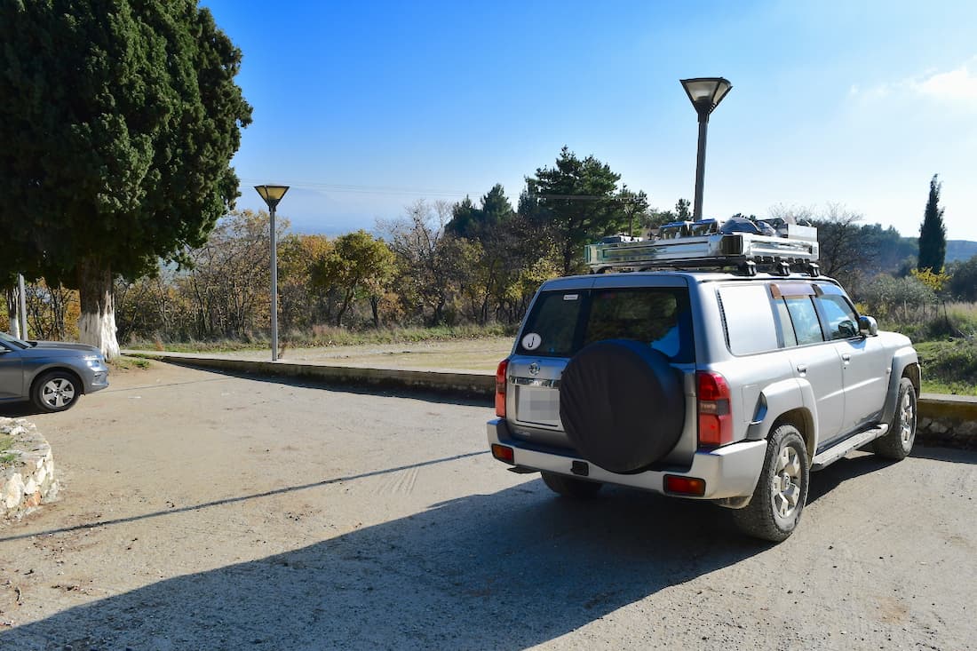 道の行き止まりが少し広くなっていてそこが修道院の駐車場です。駐車無料。