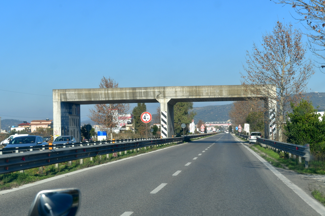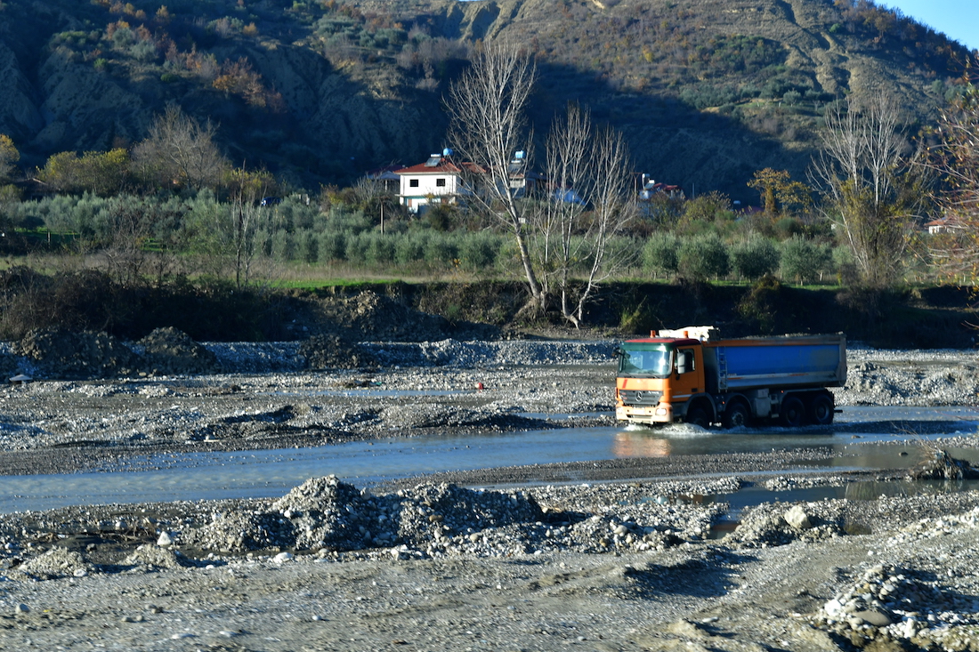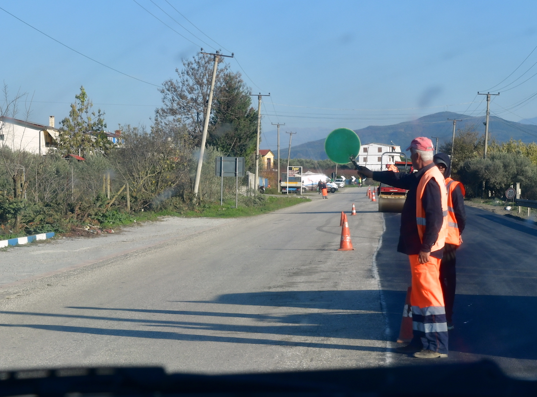 先日の大雨氾濫の修復現場を通りました。アルバニアも降ったのですね。