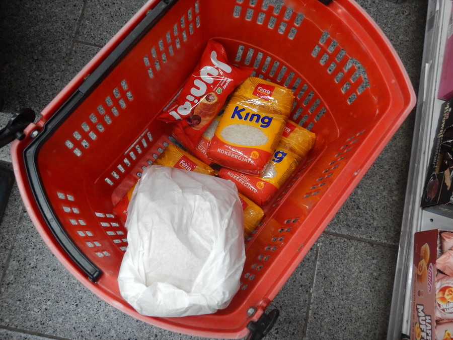 お米5kg、パン、菓子一個で620レク。残金全てキッチリ使い切りました。ぱー様、お見事!