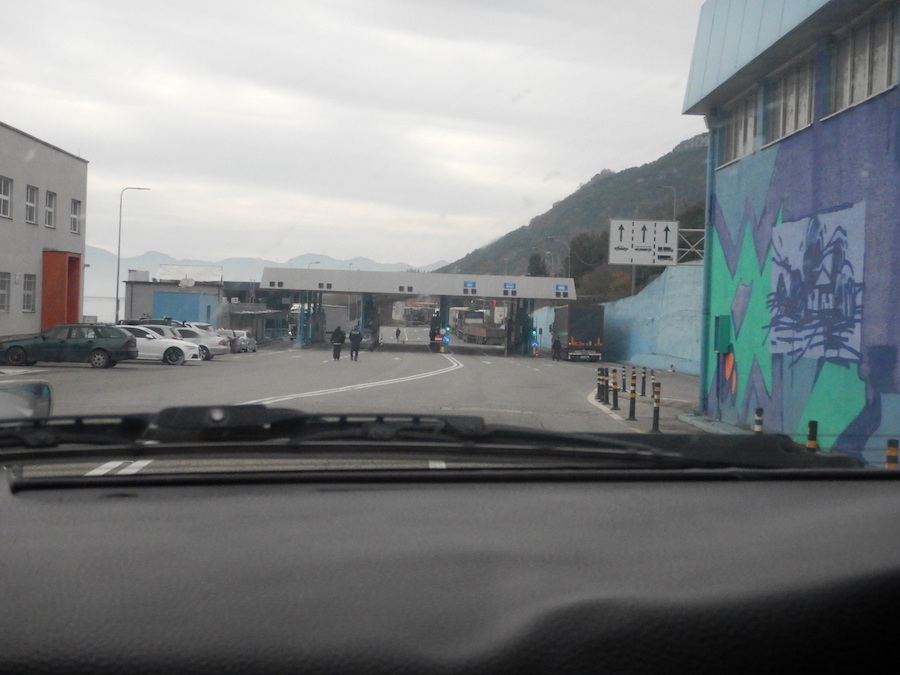 出国はドライブスルー形式。二人のパスポートと車の登録証を提出して即OK。アルバニア国内での交通違反や高速道路未払いは無かった模様。ほっ。ここまで3分。