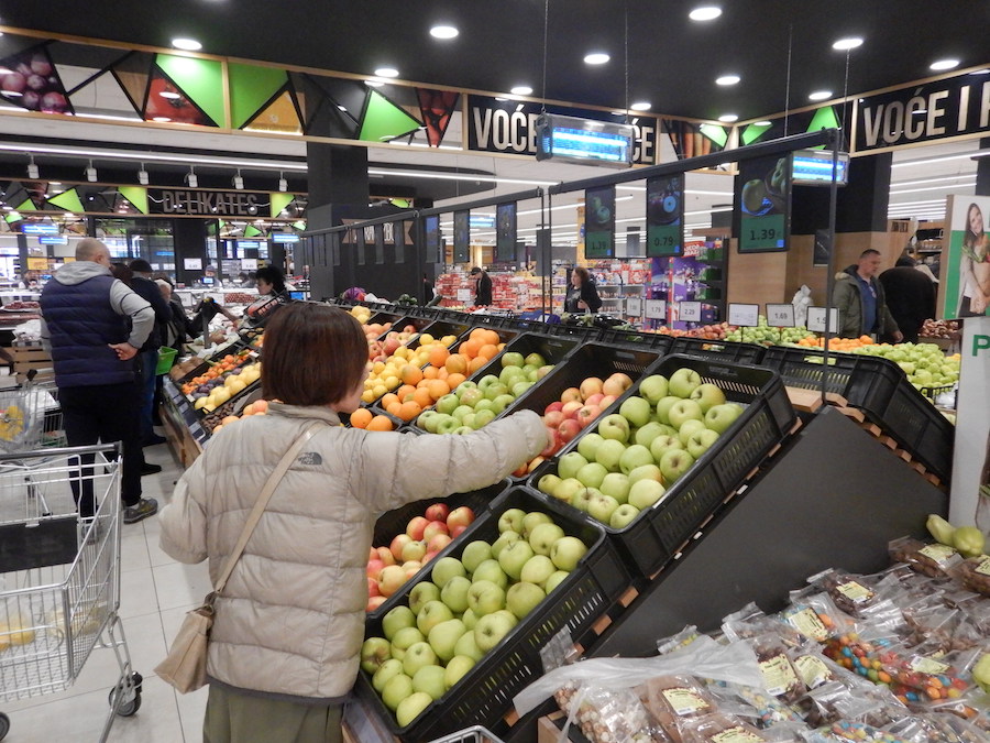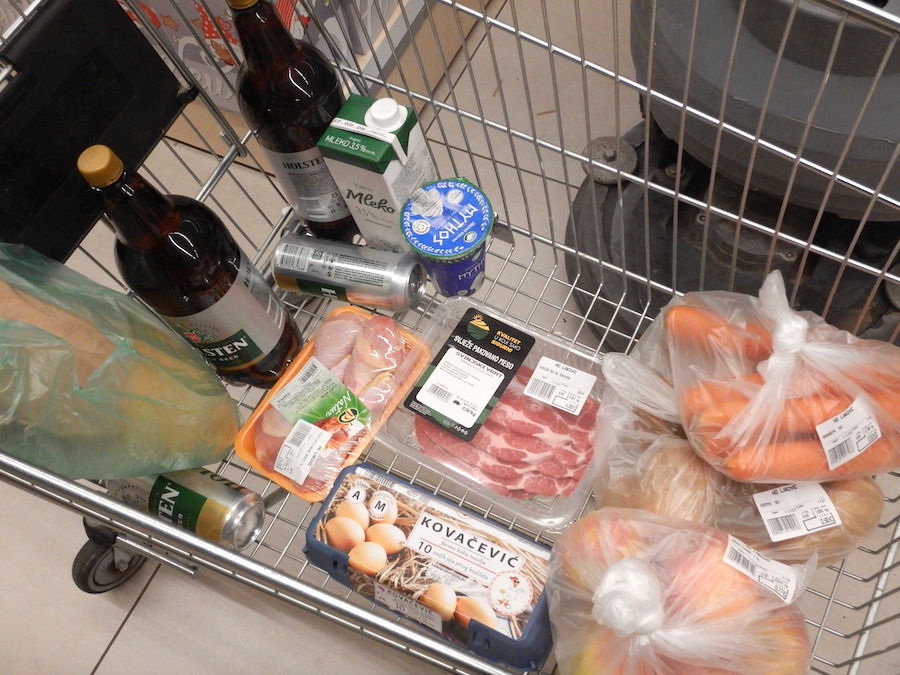 トルコ以降見かけなかった大きなスーパーがありました。さすがヨーロッパが近づいてきた気がします。品揃えも充分。値段は物によりますが、トルコよりは若干安いです。